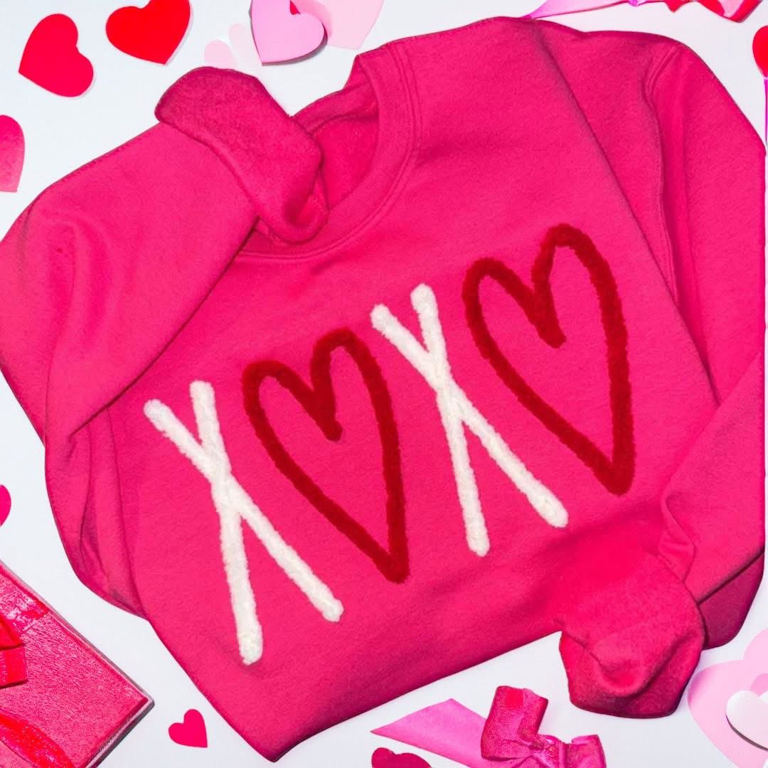 This Valentine’s Day sweatshirt features plush chenille yarn embroidery spelling out “xoxo” for a soft, textured look you can see and feel. Designed to be effortlessly cute and endlessly comfy, it’s made from a cozy, midweight fabric that’s perfect for chilly February days. The raised chenille detail adds a touch of vintage charm while giving the classic sweatshirt a playful, love-filled twist.